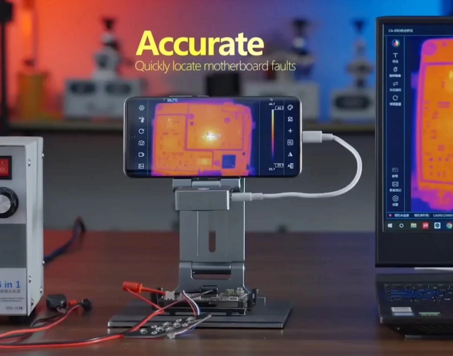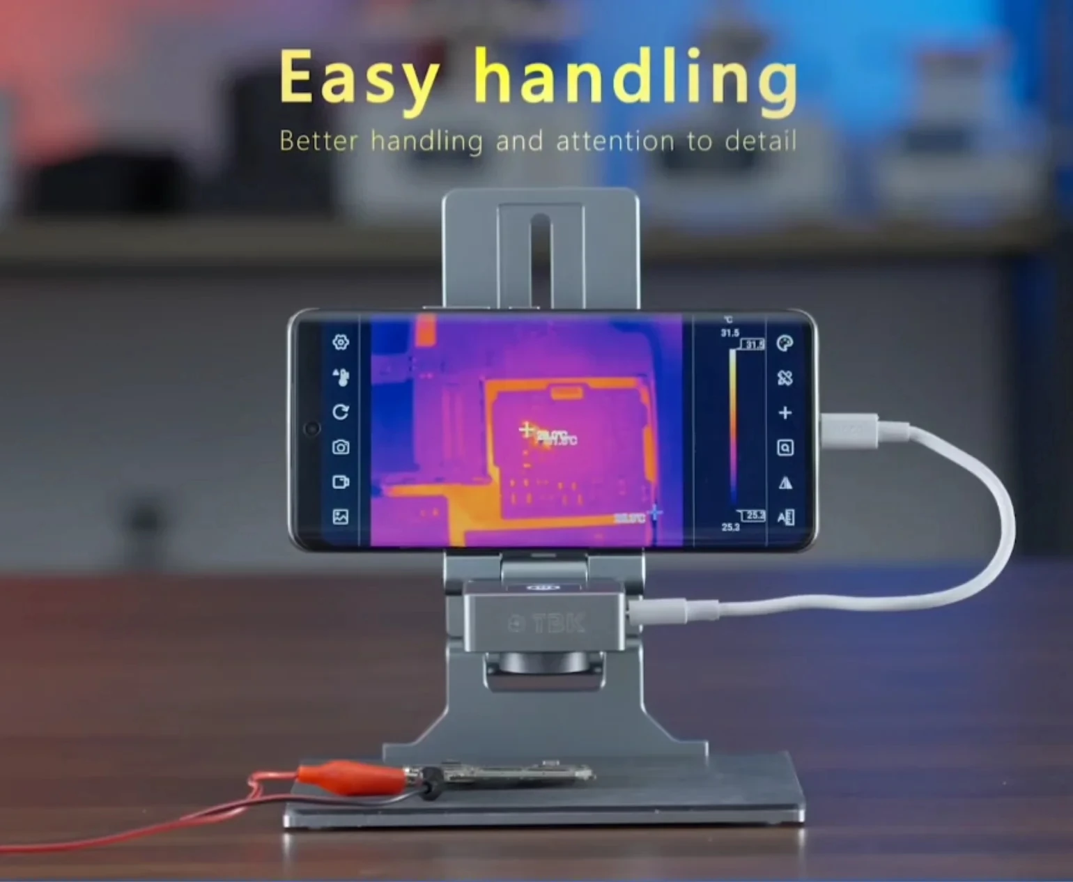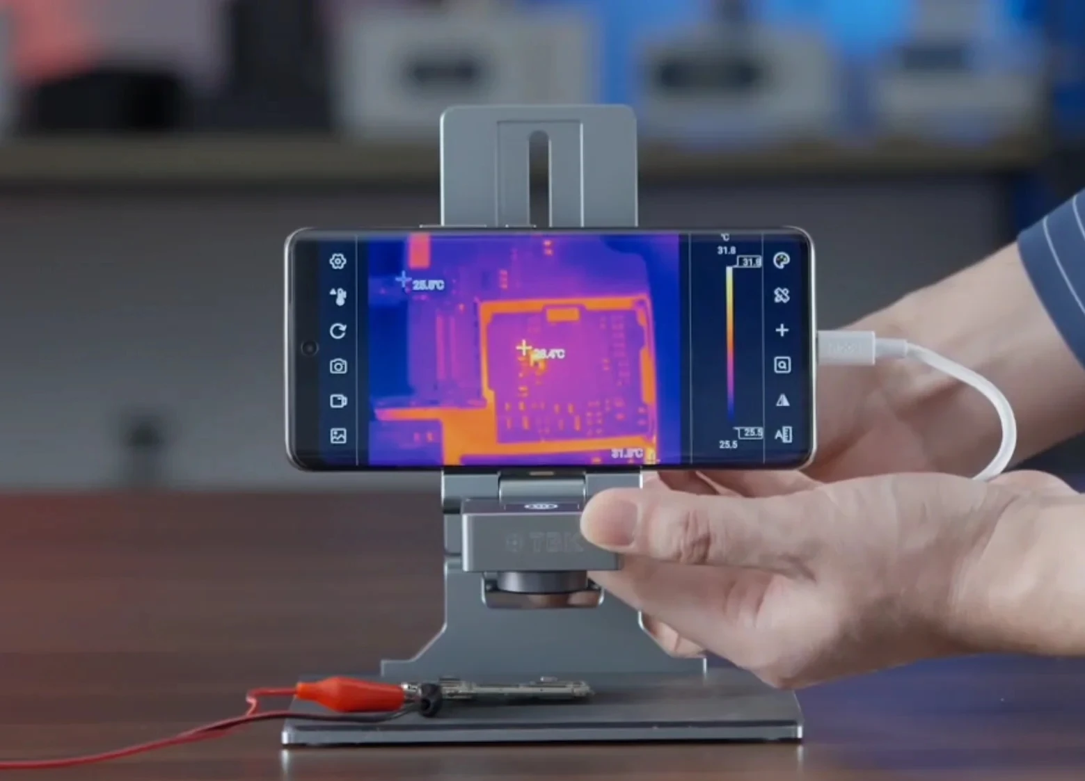 أداة احترافية من TBK مزودة بكاميرا حرارية مطوية لتحديد الأعطال بدقة على لوحات الموبايل. تساعدك على اكتشاف السخونة الزائدة وتحديد المكونات التالفة بسرعة وكفاءة عالية أثناء الصيانة.