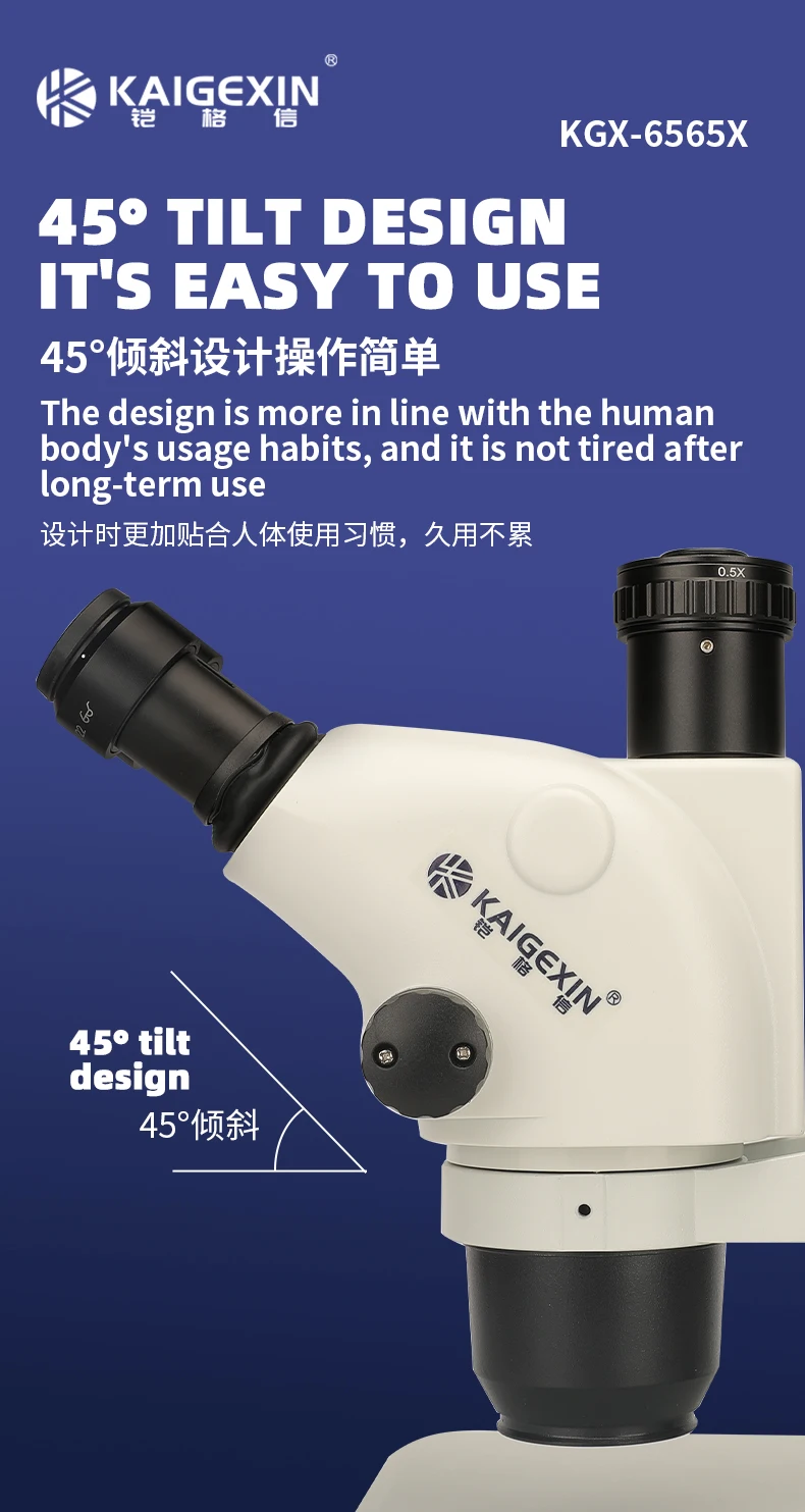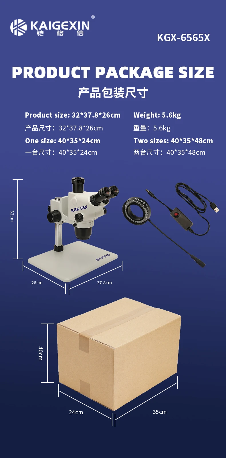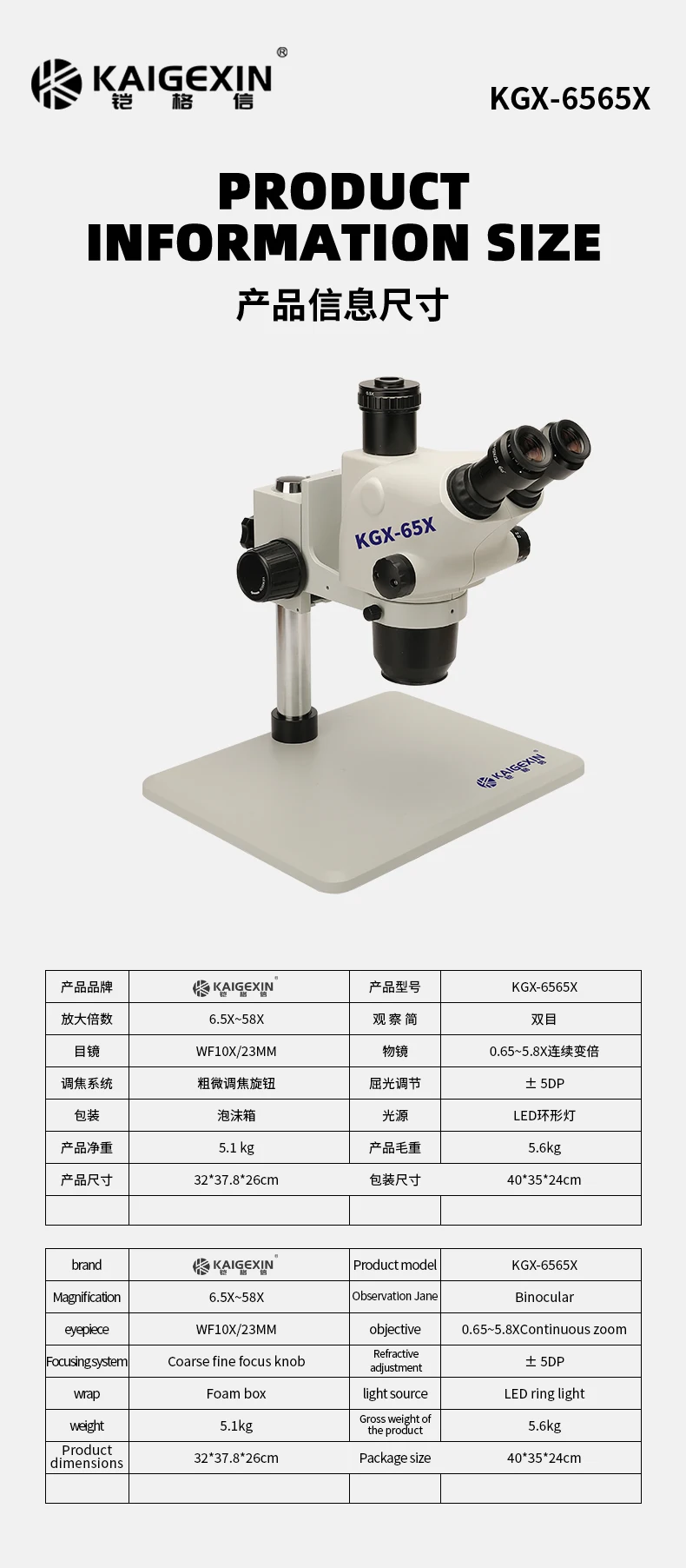 KGX-6565X Trinocular Continuous Zoom Stereo Microscope WF10X/23mm Eyepiece Suitable for Mobile Phone PCB Welding Microscope Tool